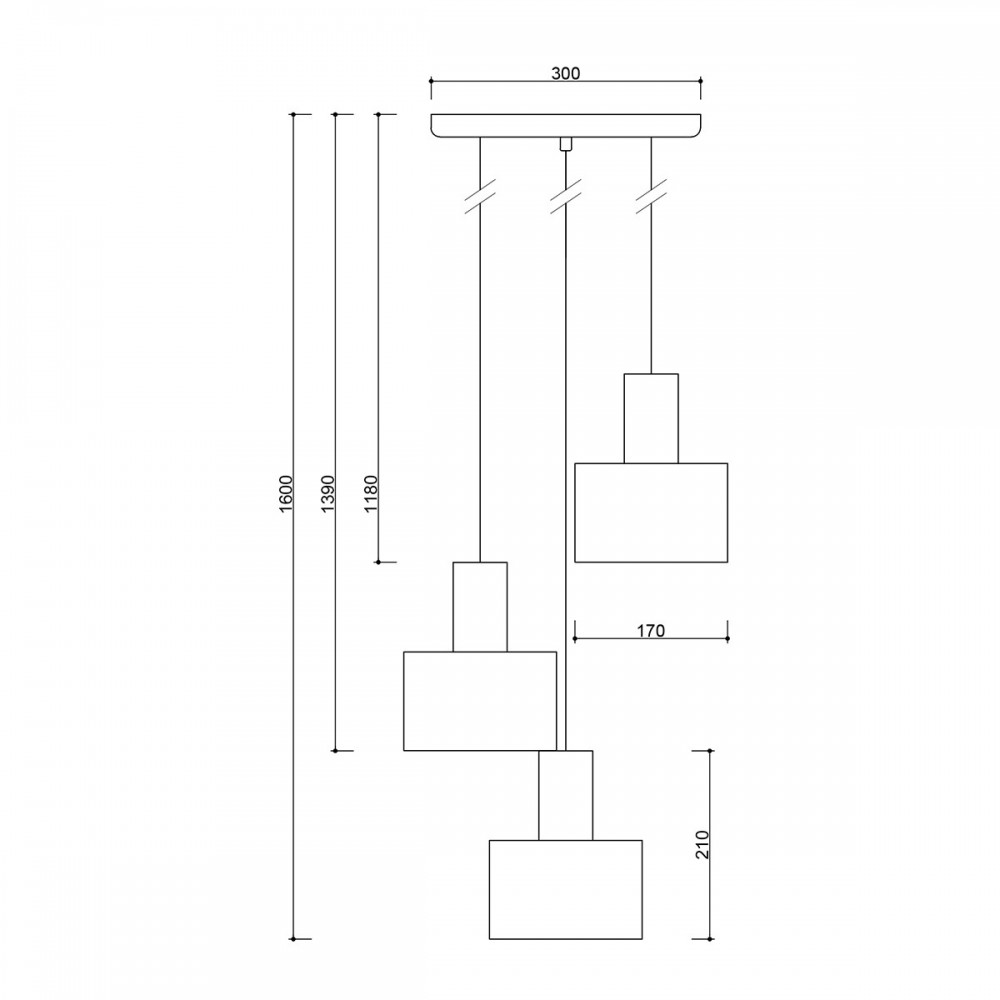 - dreifache Plafond-Deckenleuchte - Farbe schwarz (Jet Black RAL 9005) - Material Metall - Länge 30cm - Breite 17cm - Höhe 21cm - Gesamtlänge 160cm - 3x struktureller schwarzer Metall-Lampenschirm ⌀17cm - Deckengitter ⌀30cm - 3x geflochtenes Kabel, schwarzes Polyester - E27 Gewinde - max 3x15W LED - IP20