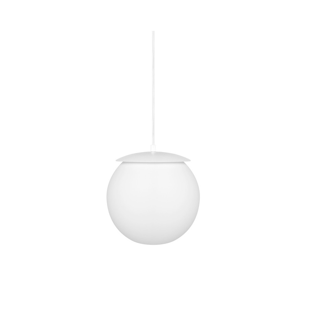 Die Leuchte ist aus hochwertigem pulverbeschichtetem Metall und Opalglas gefertigt. Der Lampenschirm mit einem Durchmesser von 30 cm verleiht der Leuchte eine optische Leichtigkeit und sorgt gleichzeitig für eine ausreichende Lichtstreuung. Die Gesamtlänge der Leuchte beträgt 130 cm, davon ist das Kabel mit Polyestergeflecht 97,5 cm lang - leicht an die Raumhöhe anpassbar. Die E27-Fassung ermöglicht die Verwendung von Standard-LED-Lampen bis zu 15 W - das bietet Funktionalität und Freiheit bei der Wahl der Lichtquelle.
