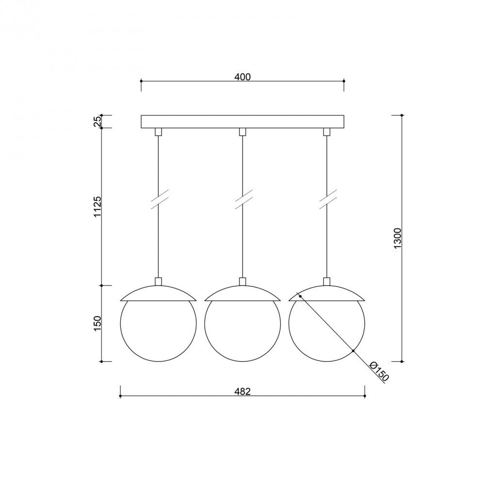 - Deckenleuchte, Hängeleuchte - weiß (Signalweiß RAL 9003) - Material Metall, Glas - Länge 48,2cm - Breite 15cm - Höhe 15cm - Gesamtlänge 130cm - drei milchig-weiße Glasschirme ⌀15cm - strukturelle weiß lackierte Halterung - 3x weißes Polyester-Flechtkabel 112,5cm - Gewinde G9 - max 3x12W LED - IP20