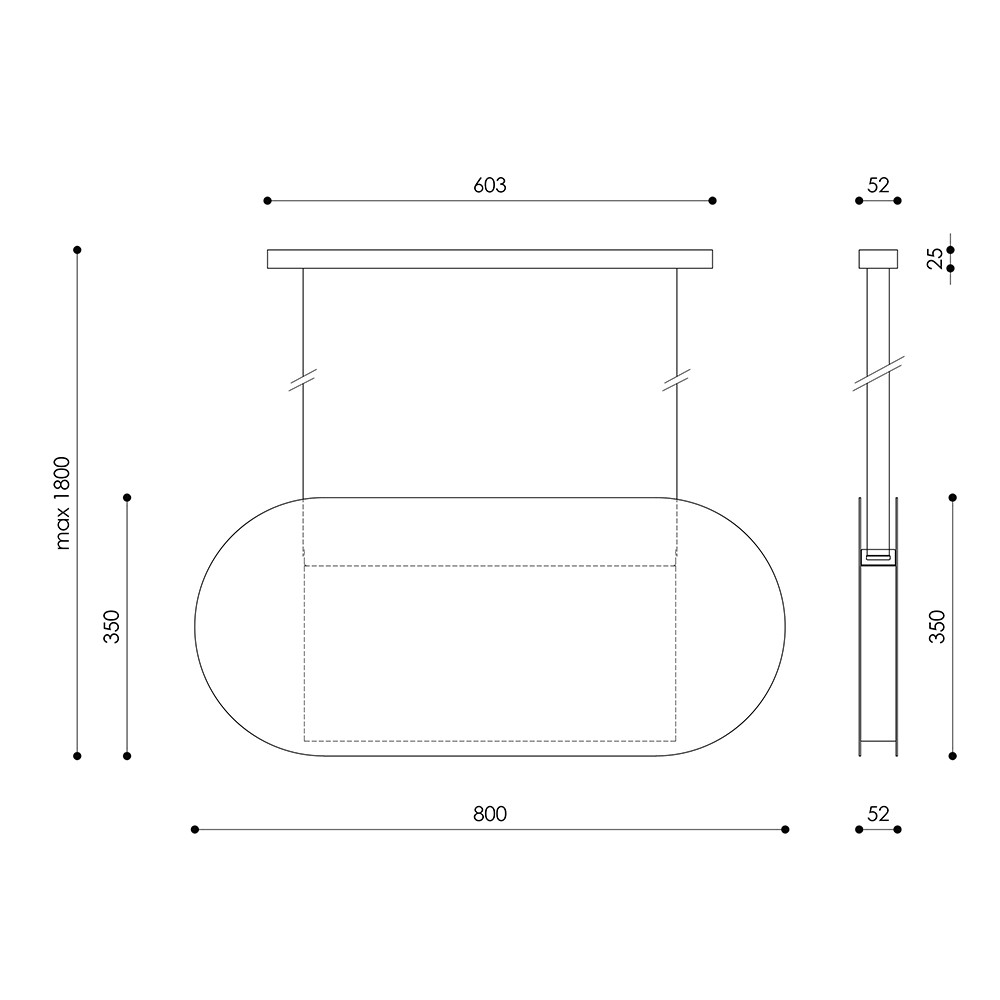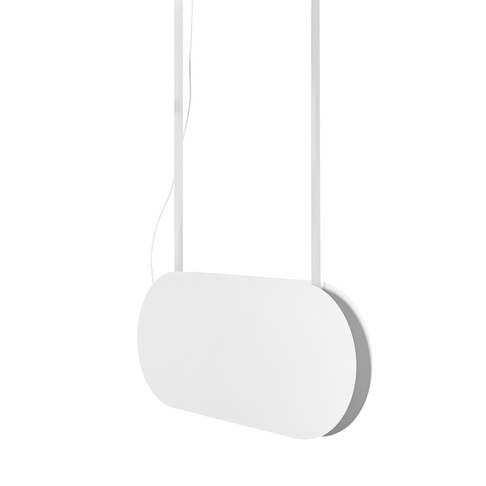 Die Leuchte ist an einem farblich auf den Korpus abgestimmten Textilband aufgehängt und 145 cm lang. Mit ihrer horizontalen Form und ihren Proportionen (80 x 5,2 x 35 cm) passt sie perfekt über eine Kücheninsel, eine Bar oder einen Tisch und bringt nicht nur Licht, sondern auch Charakter in den Raum.