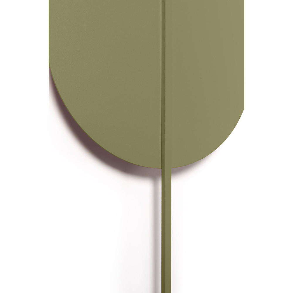 - Wandleuchte, Wandhalterung - Farbe olivgrün (Reed Green RAL 6013) - Material Metall, Messing - Länge 3,8cm - Breite 21cm - Höhe 56,6cm - olivgrüner Lampenschirm mit Dekorelement (mit Magneten an der Wandhalterung befestigt) - weiße Metallhalterung 8x8cm - Gewinde 2xG9 - max 2x12W - IP20